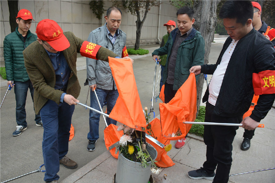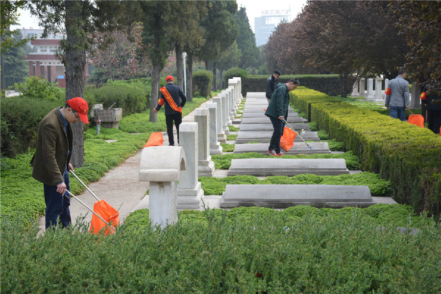 三、開展“倡議文明緬懷,減少廢棄污染”拾撿垃圾志愿服務活動。緬懷先烈活動結(jié)束后,市建投公司志愿者們在烈士陵園內(nèi)開展“倡議文明緬懷,減少廢棄污染”拾撿垃圾志愿服務活動。每位志愿者都手持垃圾鉗,認真將散落在紀念碑前以及隱藏在雜草中的廢棄鮮花、飲料瓶、紙張等垃圾拾撿起來放入提前準備好的垃圾袋中。活動持續(xù)一個小時,志愿者們在祭奠先烈的同時以自己的實際行動表達崇敬之情,并倡導以獻一束花、敬一杯酒、植一棵樹、清掃墓碑等方式寄托哀思,將祭拜逝者的傳統(tǒng)習俗以更加環(huán)保、健康、安全、文明的方式表達,營造文明祭祀的良好氛圍。
