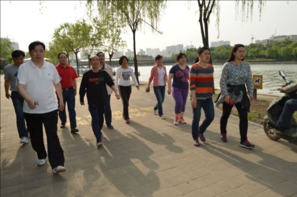 4月28日下午4:00,斜陽濃濃,微風(fēng)徐徐,在集團公司領(lǐng)導(dǎo)秦廣遠、付立文等同志的帶領(lǐng)下,近40名員工在樓下準時集合,排成整齊的健步走隊伍,揮舞著“鄭州市建設(shè)投資集團”的旗幟,精神抖擻地沿著如意湖畔闊步前行,在運動中體驗健康和快樂。